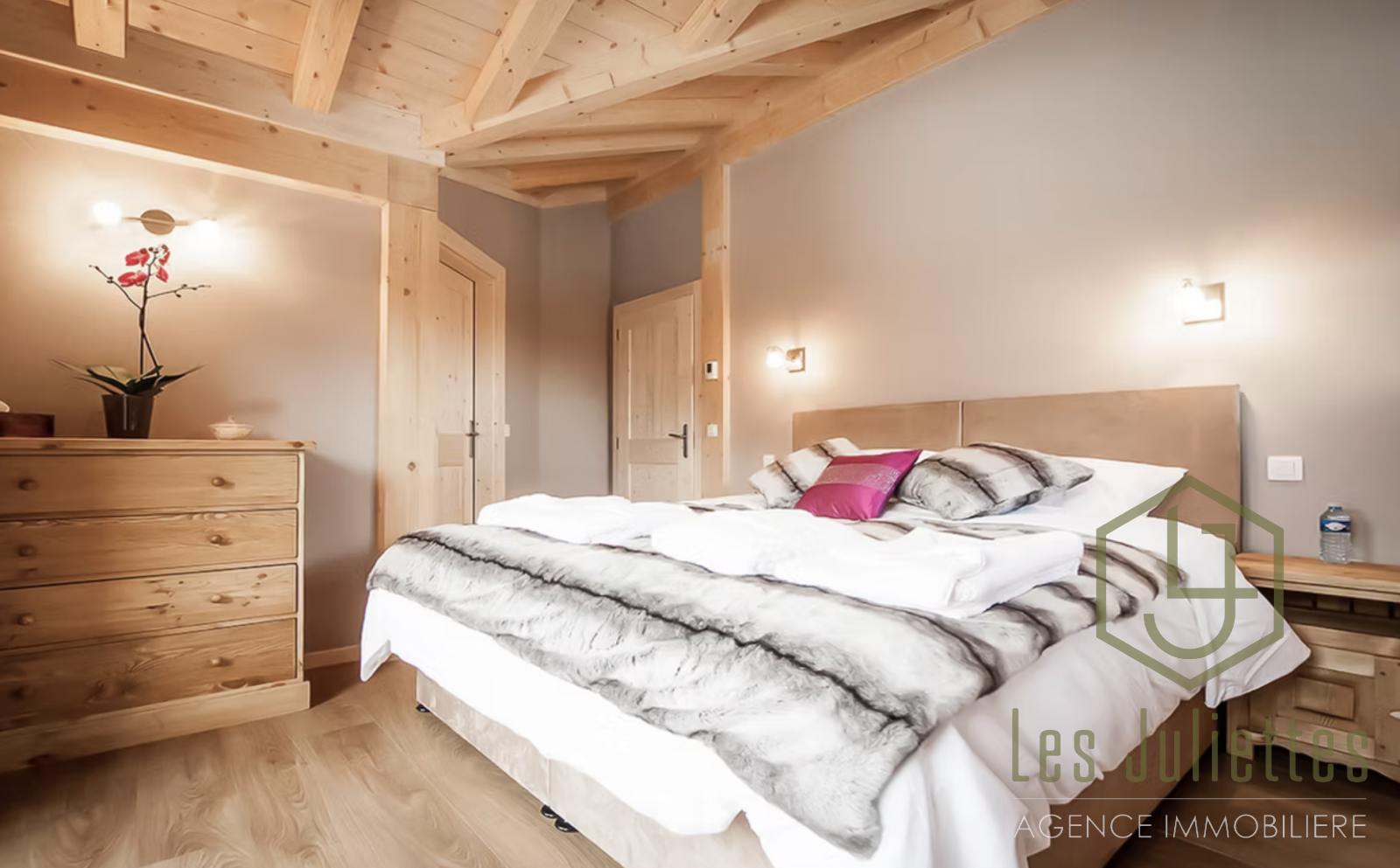Construit en 2012 par un constructeur local, ce bien allie le charme du bois à des prestations modernes sur une surface totale d’environ 233 m².