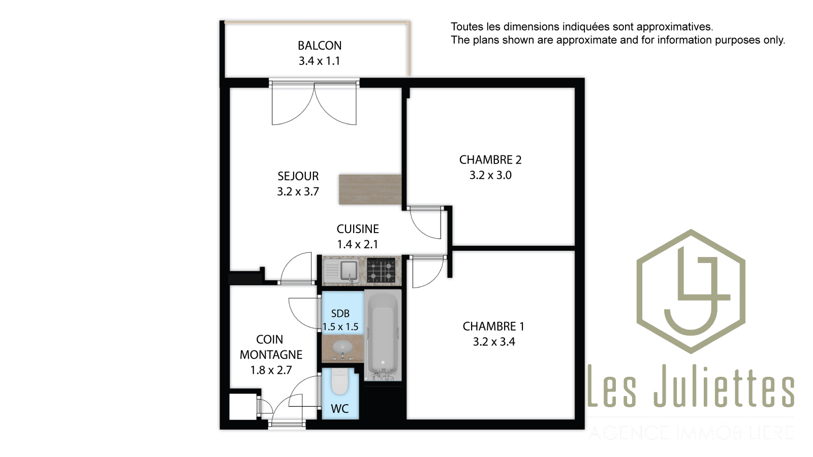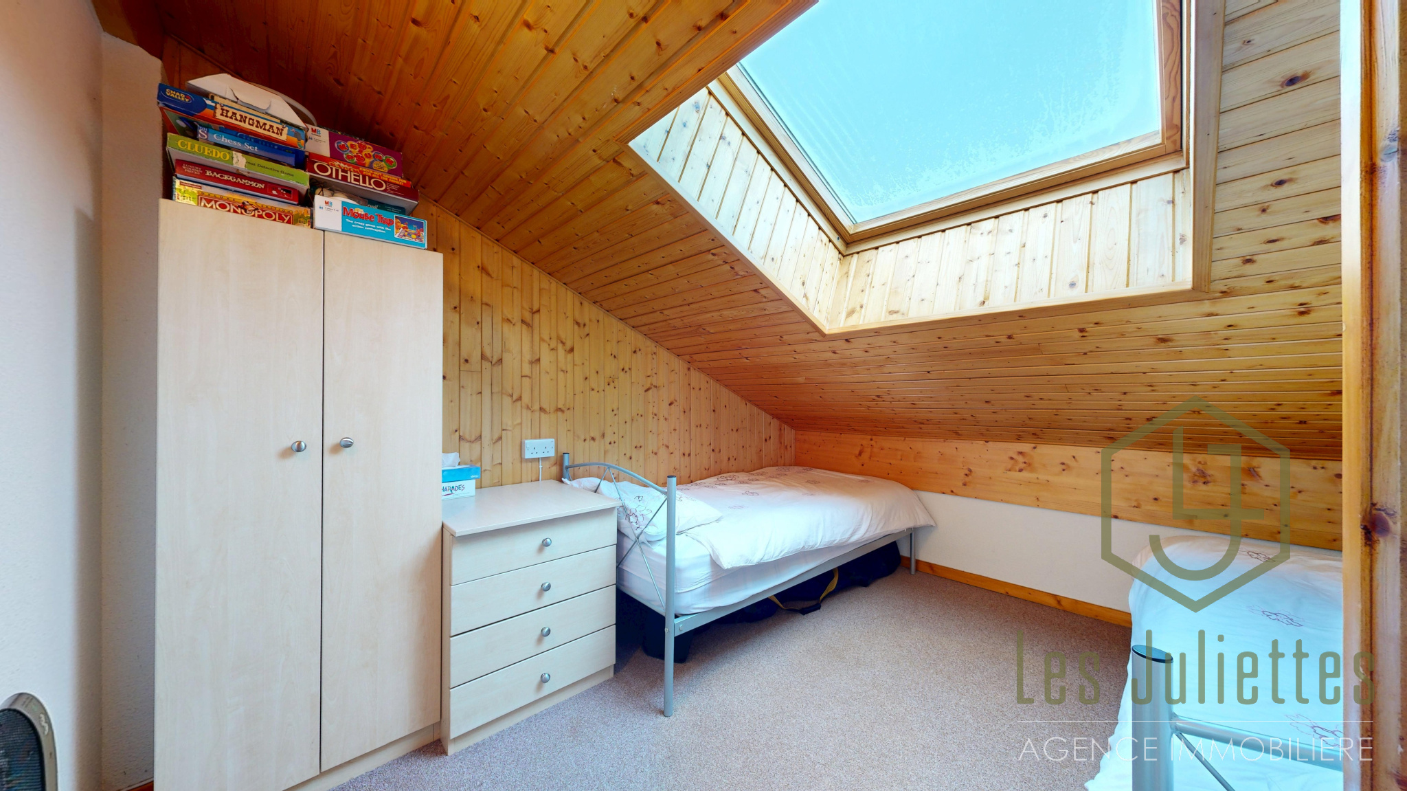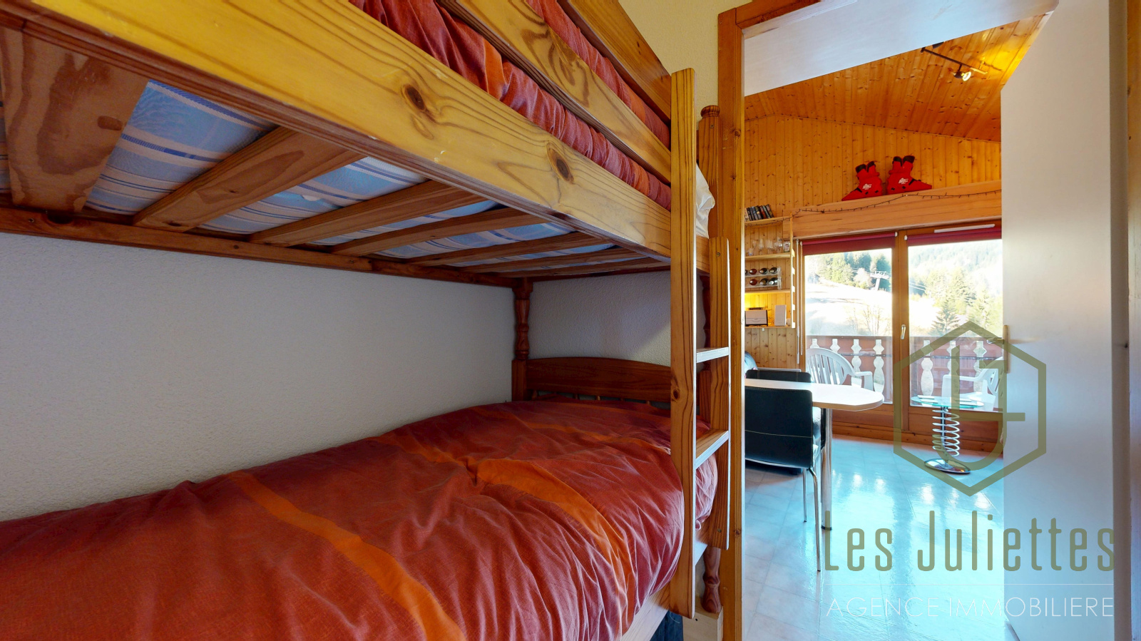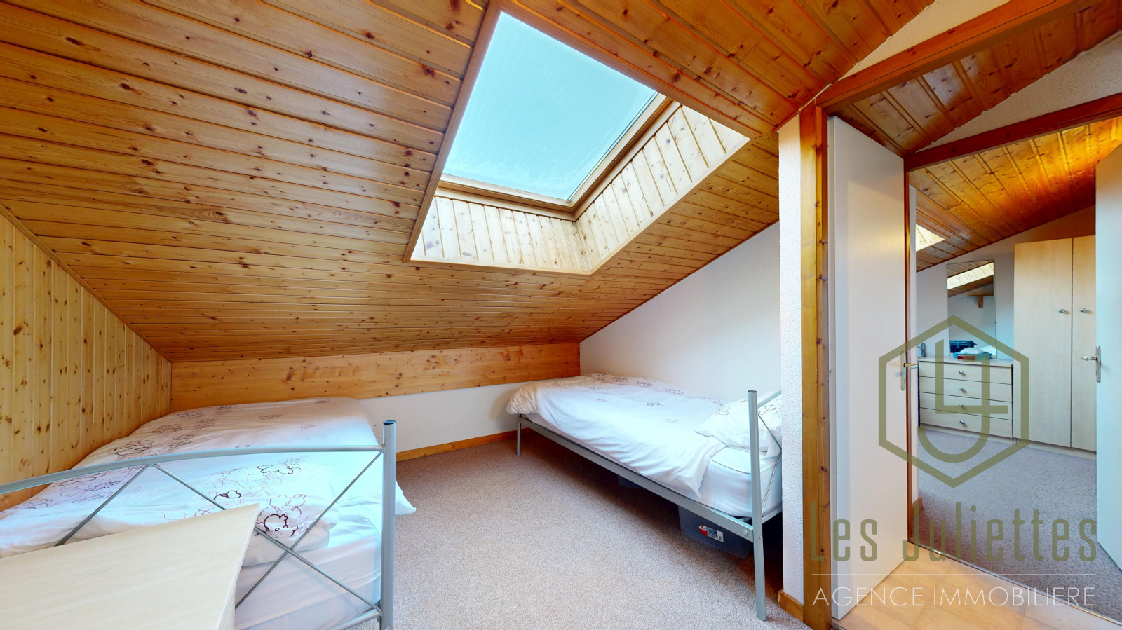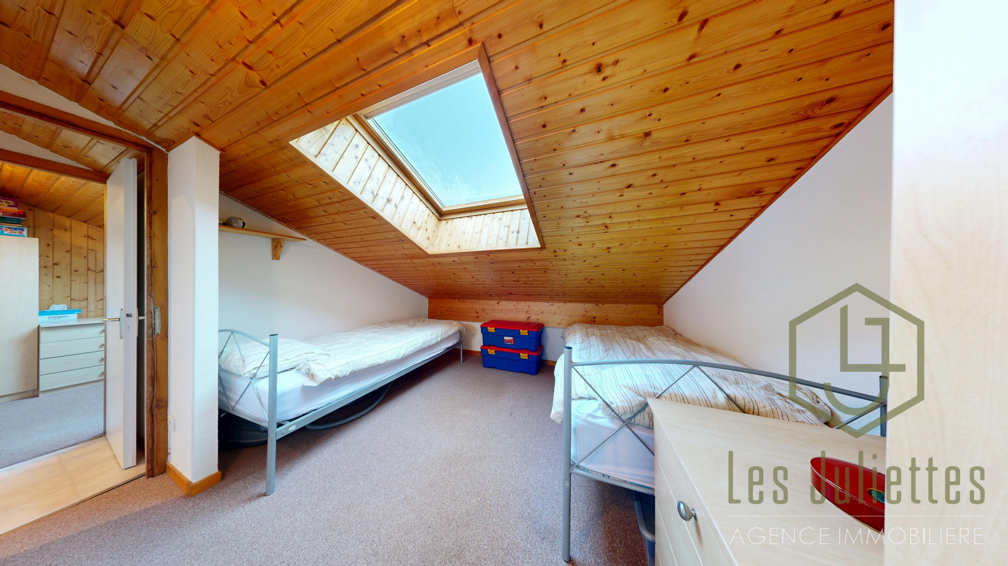 Sa surface totale est de 41 m² (27 m² au-dessus de 1,80 m et 14 m² sous combles). Il comprend 2 chambres doubles, un coin montagne avec lits superposés, pouvant accueillir jusqu’à 6 personnes.