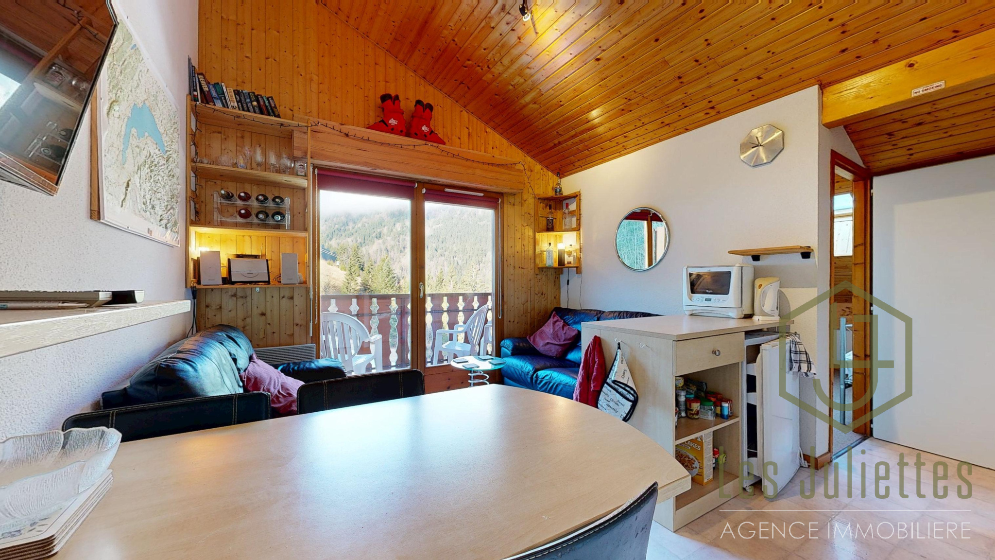 Le balcon exposé ouest offre une superbe vue sur les pistes et les montagnes, idéale pour profiter du coucher de soleil.